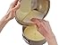 チーズの中に含まれる水分をきりたいので、半分にカットして、切り口を下に向けてザルに入れておくと効率良く水が切れます。